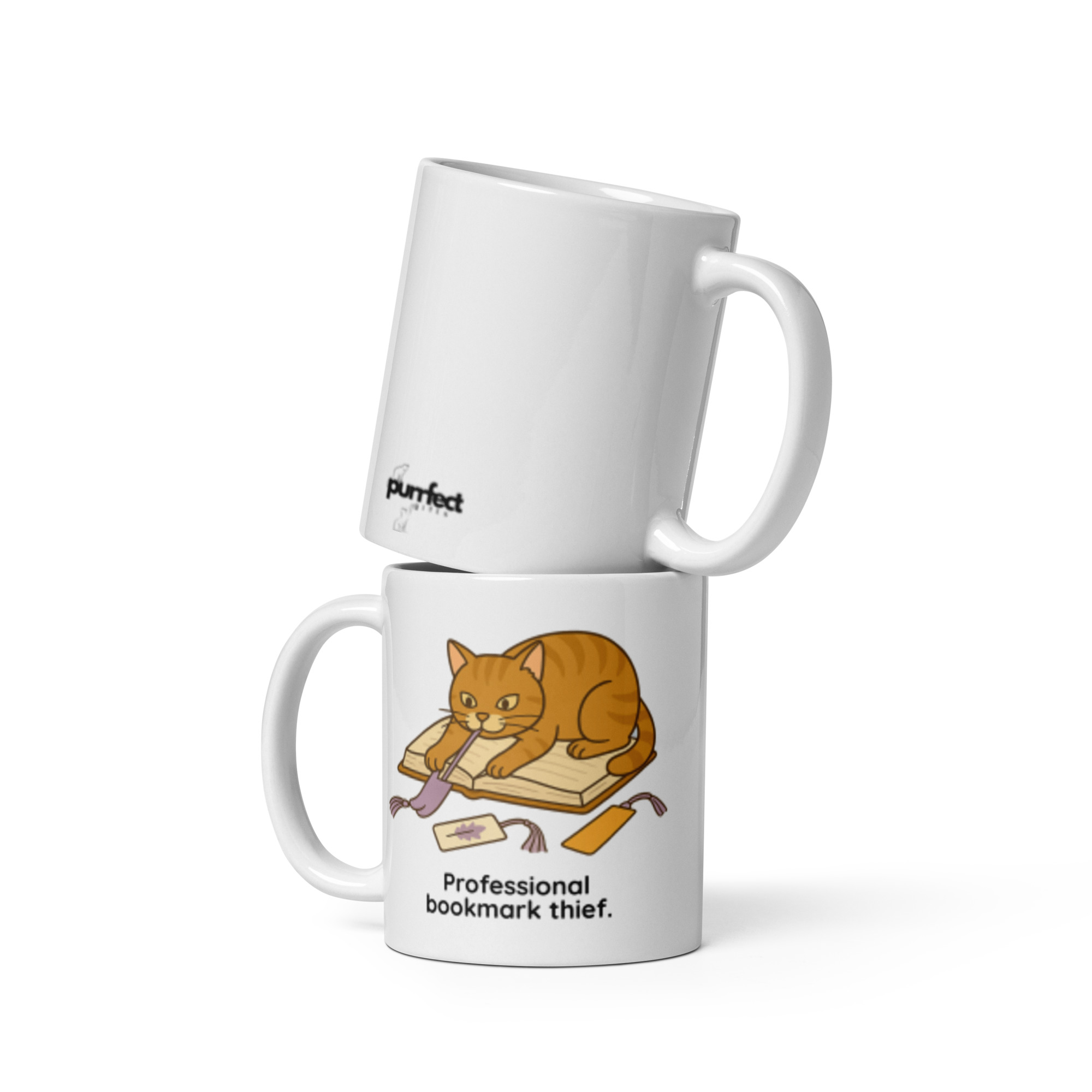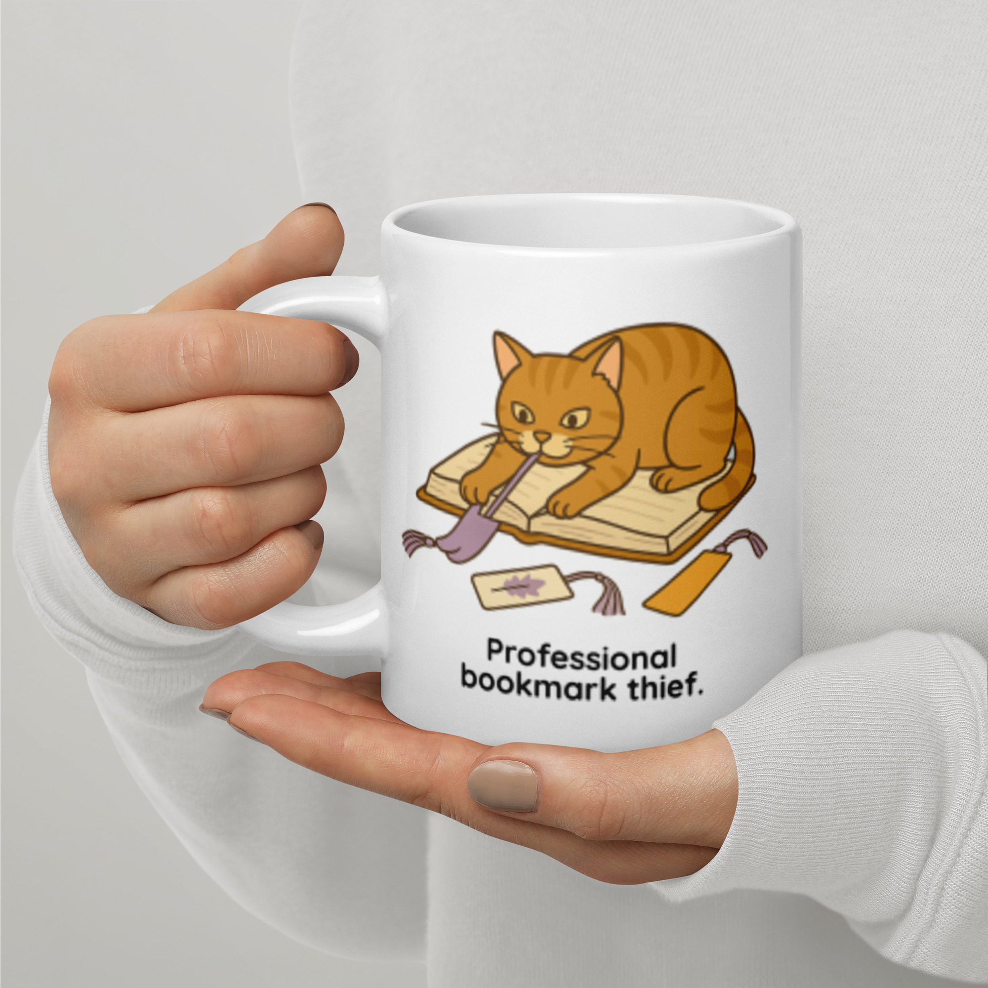 Caught red-pawed! This cheeky tabby cat can’t resist sneaking away with your page marker, making this mug a playful nod to both feline mischief and bookworm habits. Perfect for readers, cat enthusiasts, or anyone who knows that sometimes the best plot twist is caused by a furry friend.