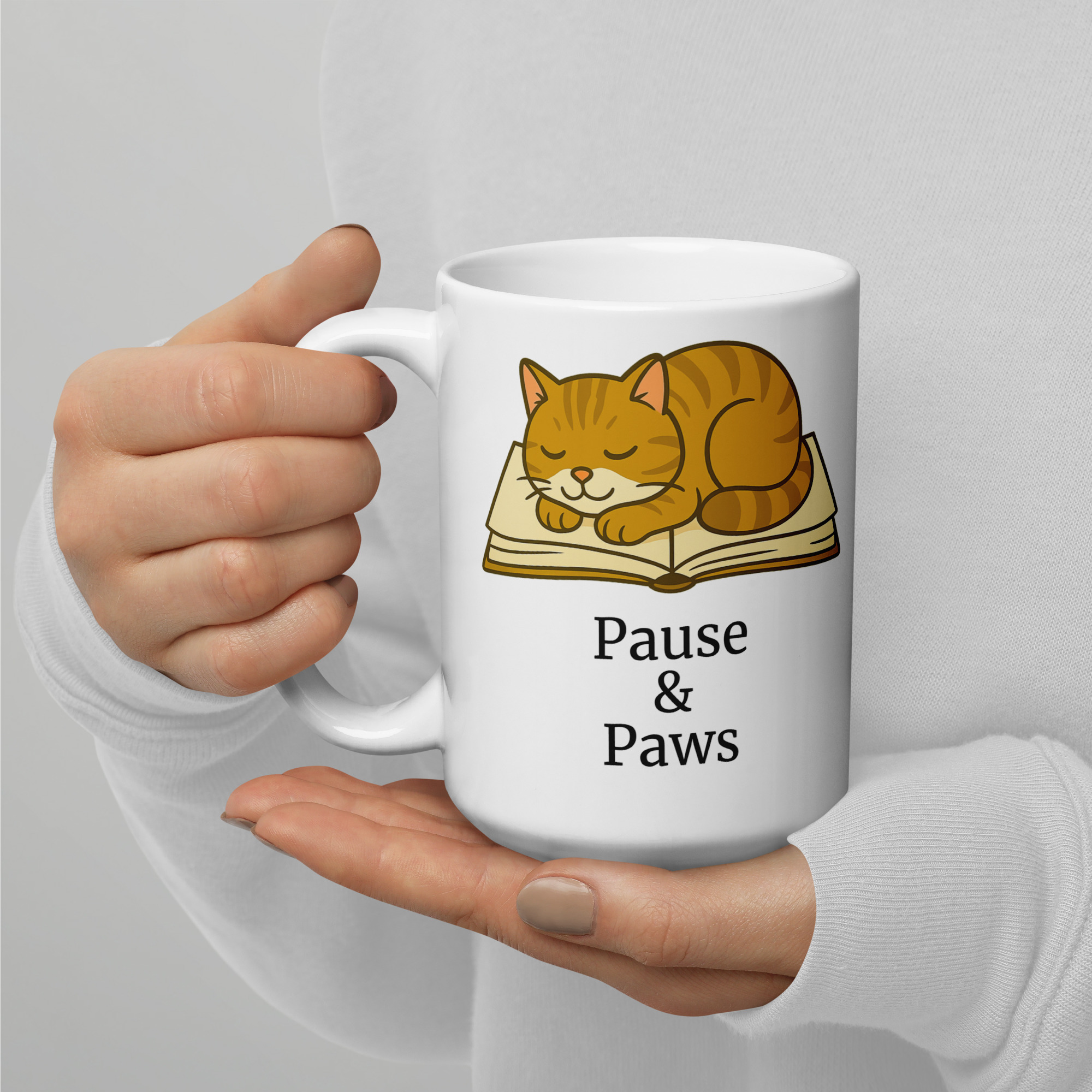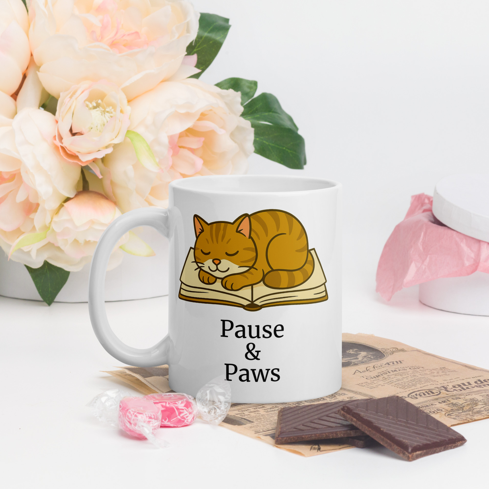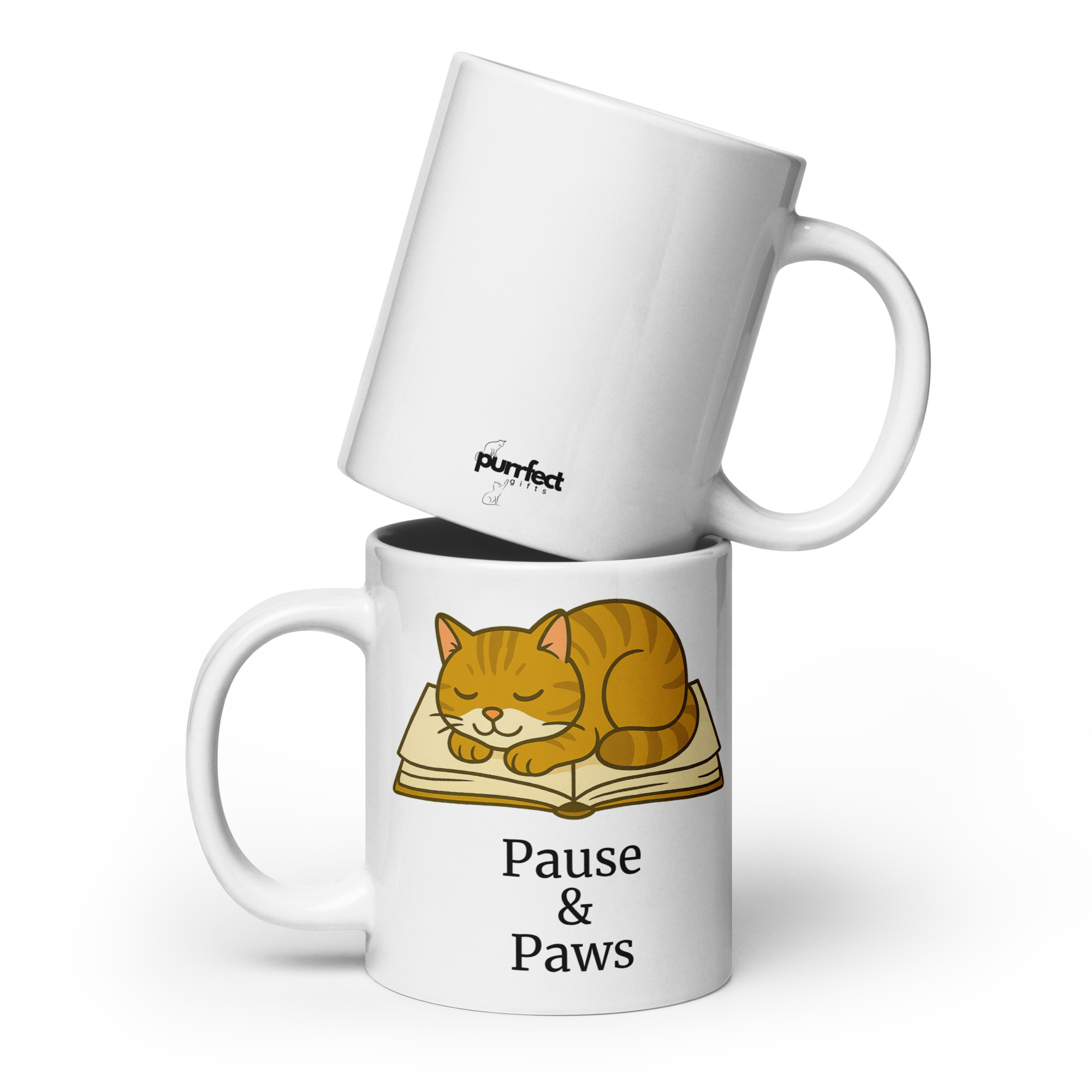 Take a break the purr-fect way. This cosy mug features a sweet tabby cat curled up on an open book with the playful reminder to Pause & Paws. Ideal for bookworms, cat lovers, and anyone who knows that life’s best chapters include a warm cuppa and a furry friend.